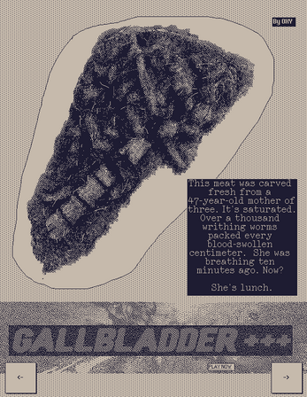 Very unique, kidna disgusting game. I don't know why.. but just reading "teenage worm" was a little scary, haha. Honestly loved it! Anyway, played your game in the video below, where I go through the entire PC Cursed Demo Disc. Timestamps included. Please check it out if you get a chance :)!